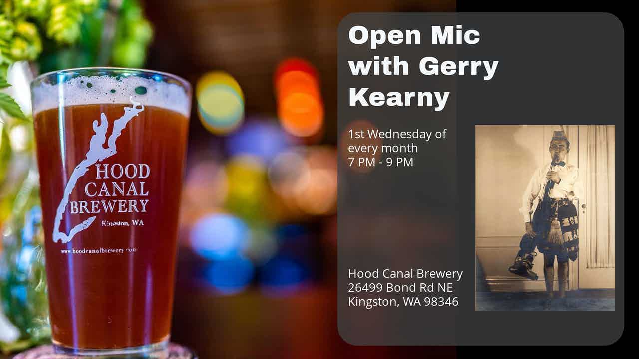 Gerry Kearney hosts an open mic the first Wednesday of every month at the Hood Canal Brewery. All ages, instruments, styles, spoken word and polite shenanigans are welcome. Artisan beers, excellent servers, live music and good company. What more can you ask in life?